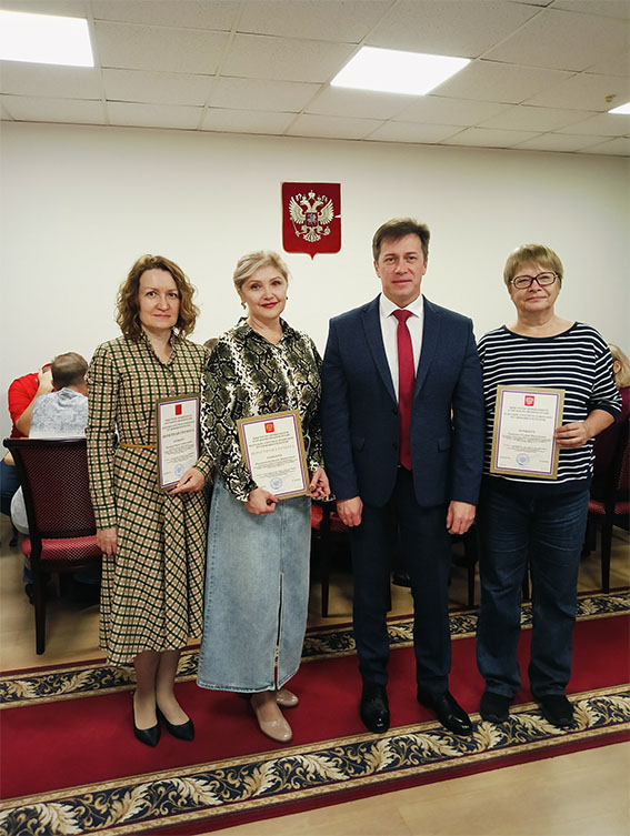Директор Алексей Сазонов вручил грамоты заместителю главного бухгалтера Филимоновой Оксане Витальевне, начальнику отделу метрологического и экономического обеспечения Камаевой Ирине Анатольевне и ведущему инженеру по сертификации Ткаченко Галине Васильевне.